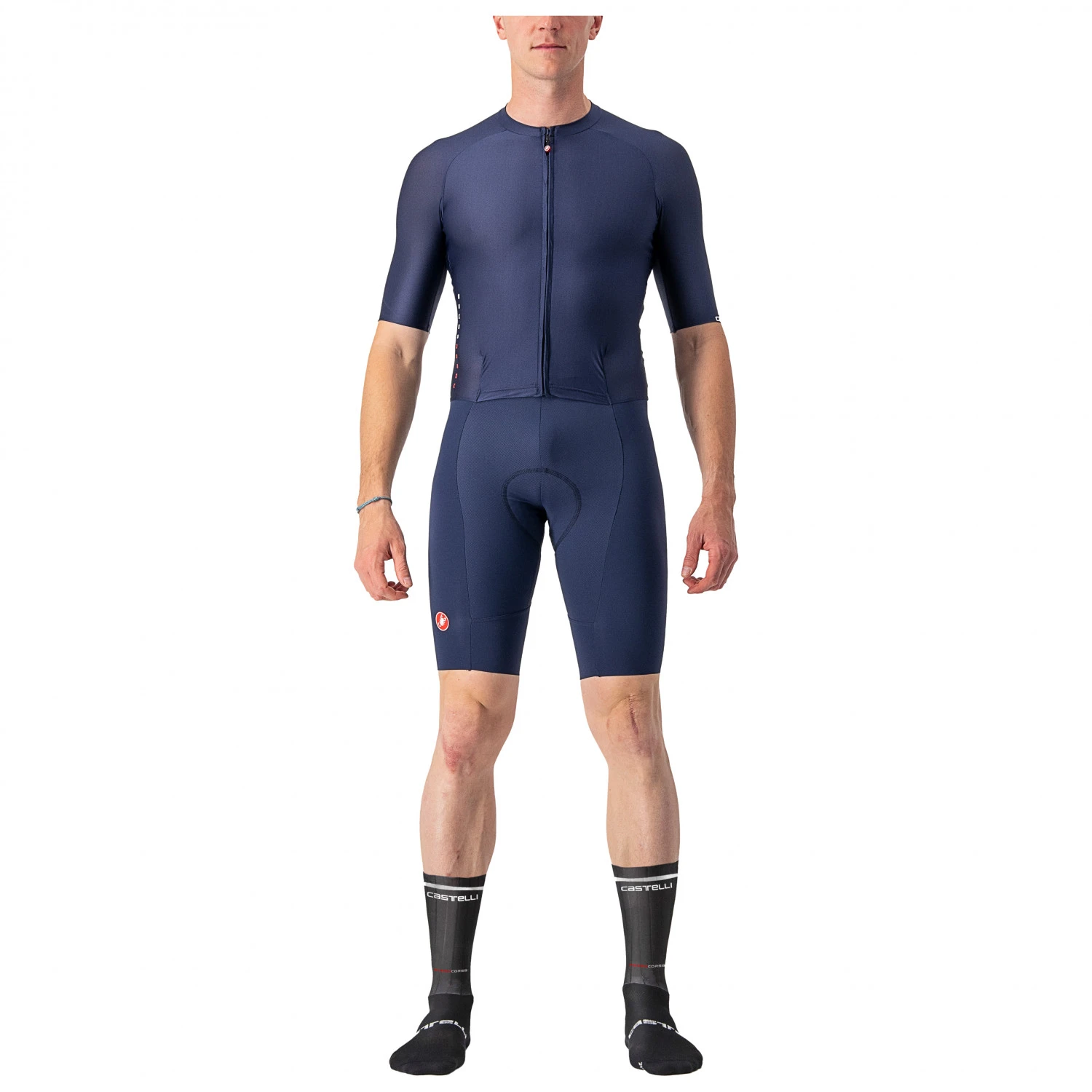 The Sanremo RC Speed Suit from Castelli has been developed for the best possible aerodynamics in the 30-55km/h range. In order to achieve this, the suit uses a sophisticated material and seam arrangement based on CFD simulations and the very sleek-looking Airflow shoulder construction. However, the fact that the demands of the one-piece suit go far beyond the requirements of a mere time trial suit is indicated by the speed range specified and the San Remo product name itself. In addition to its low weight and aerodynamics, the Sanremo RC Speed Suit also provides exactly the comfort and moisture management that are absolutely necessary for the tough races of the WorldTour!