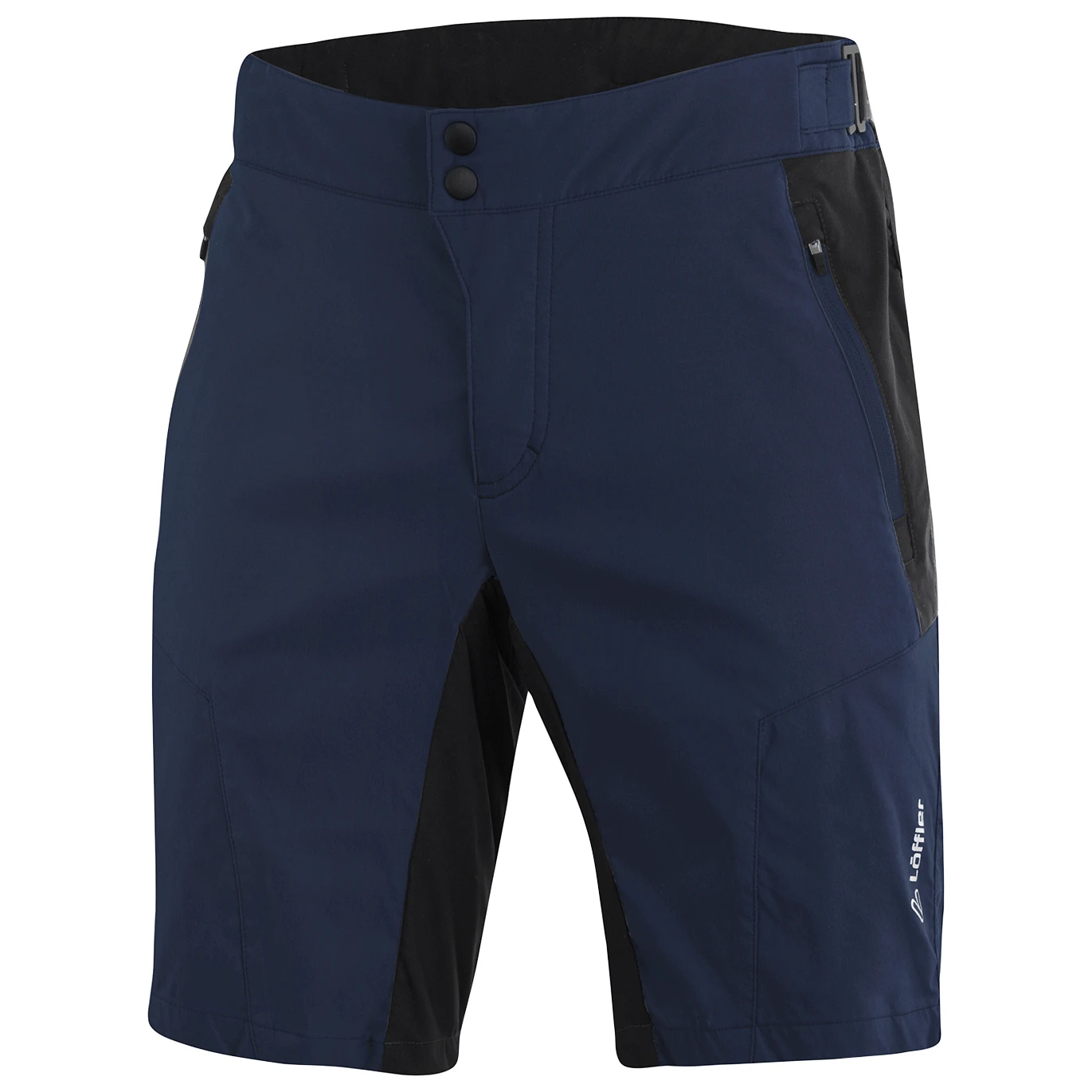 The “CSL” in the Löffler Bike Shorts Evo CSL cycling trousers stands for: Comfort Stretch Light. The quick-drying, elastic, lightweight, water- and dirt-repellent cycling shorts come with removable inner bike shorts whose flexible material guarantees a perfect fit with maximum freedom of movement. The comfortably cut cycling shorts with medium leg length have two zip-in pockets at the front. The waistband width adjustment with two side hooks, 2-way stretch and the zipper as well as the two-way elastic insert in the higher cut back panel give the trousers the highest wearing comfort and an optimal fit when cycling. Reflectors increase road safety while the COMFORT Elastic seat pad maximises riding pleasure. COMFORT Elastic is Löffler’s sporty all-rounder. Anatomically shaped, elastic, very supple, permanently compact, and dense perforated foam in 12 mm thickness enables maximum and well-ventilated seating comfort.