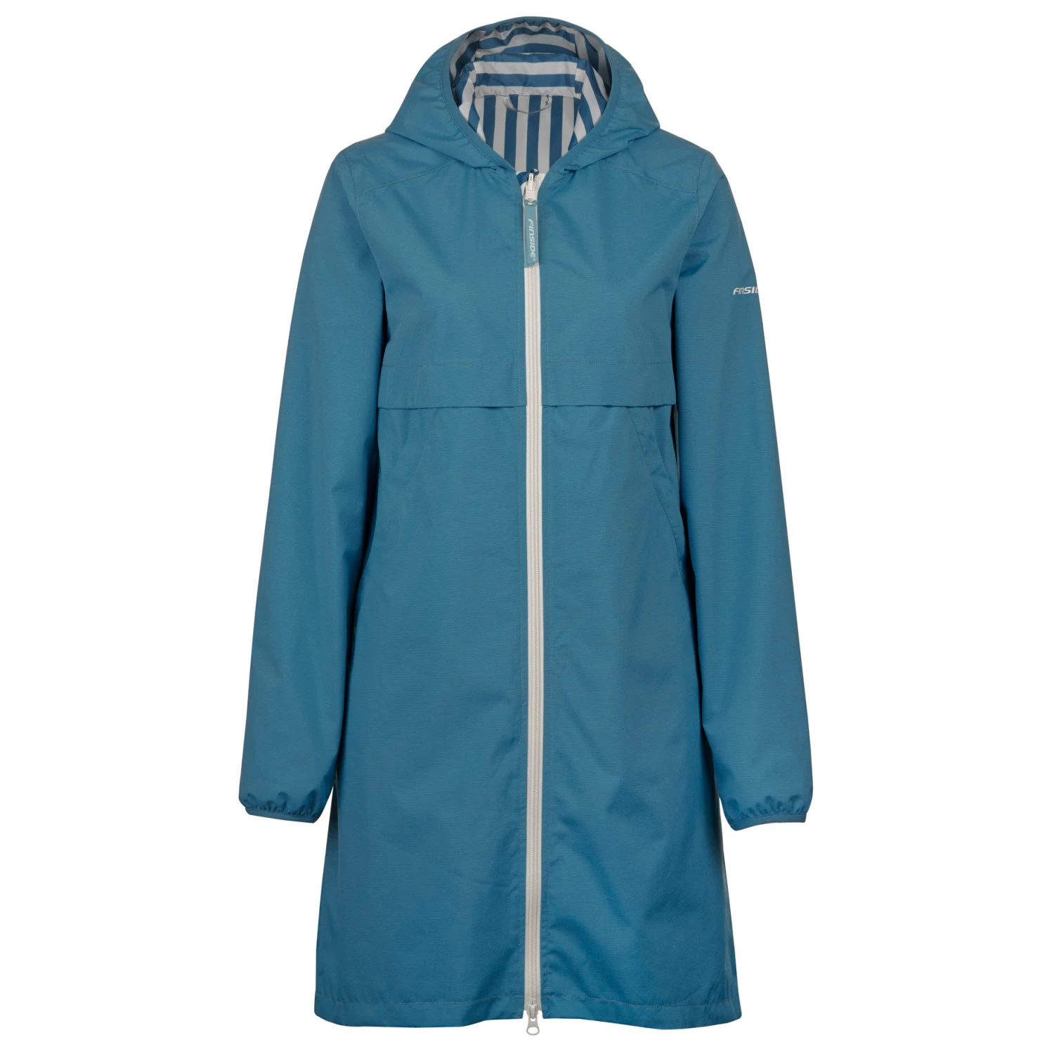 The Women’s Vuono from Finside is great for leisure and everyday life. The rain coat is both reversible and weatherproof. Its windproof and waterproof outer will protect you against the elements. The taped seams and a laminated outer provide extra weather protection. In addition, it features two front pockets for storing away your valuables.